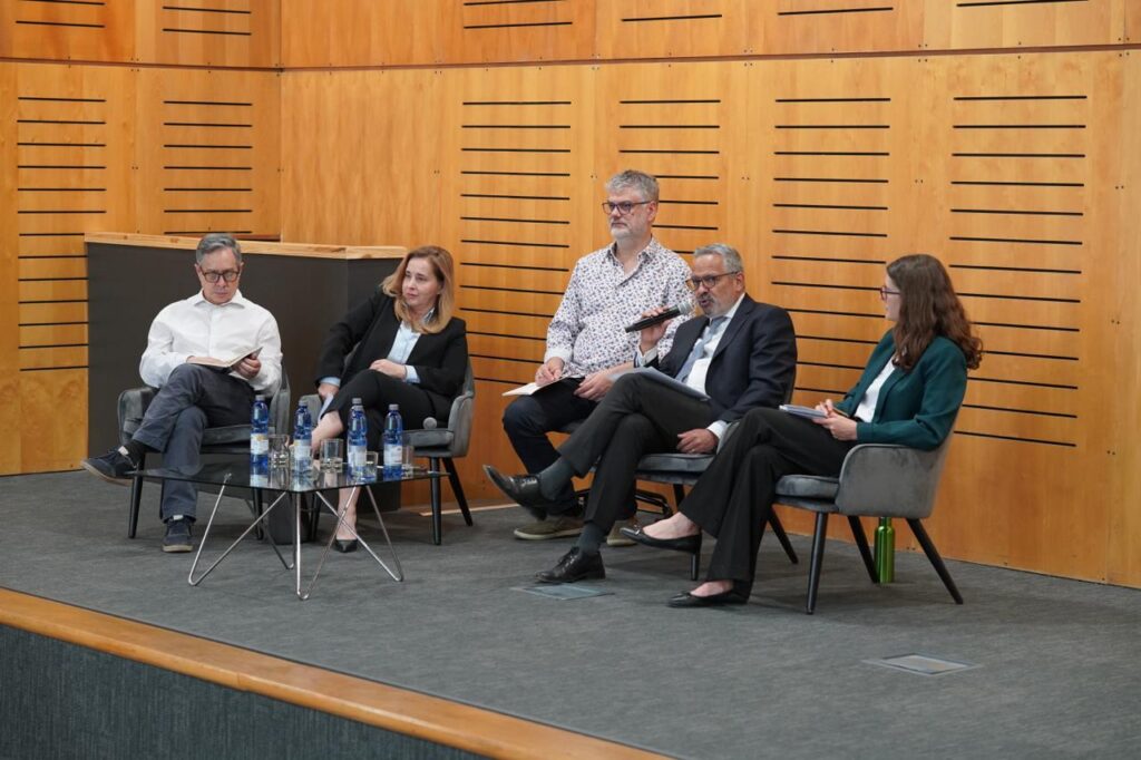 A esto, le siguió una mesa moderada por Umut Aydin (directora del Instituto de Ciencia Política), Johannes Rehner (director del Instituto de Geografía) y Claudio Rolle (director del Instituto de Historia), quienes tuvieron como contraparte a dos funcionarios del Ministerio de Relaciones Exteriores: Carlos Morán, jefe de la División de Medio Oriente y África y María Eugenia Urcelay, subdirectora de la División de Medio Oriente y África.